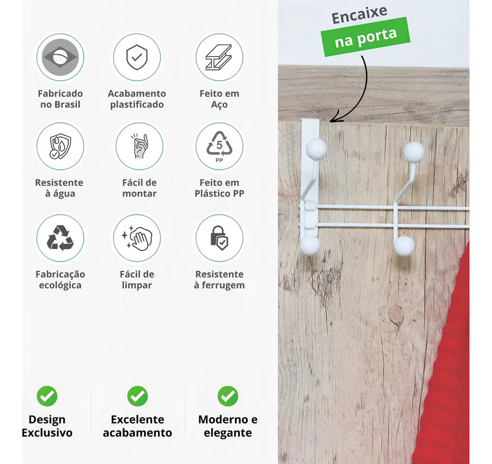 Importante: O gancho pode ser utilizado em portas de até 3,8cm de espessura.