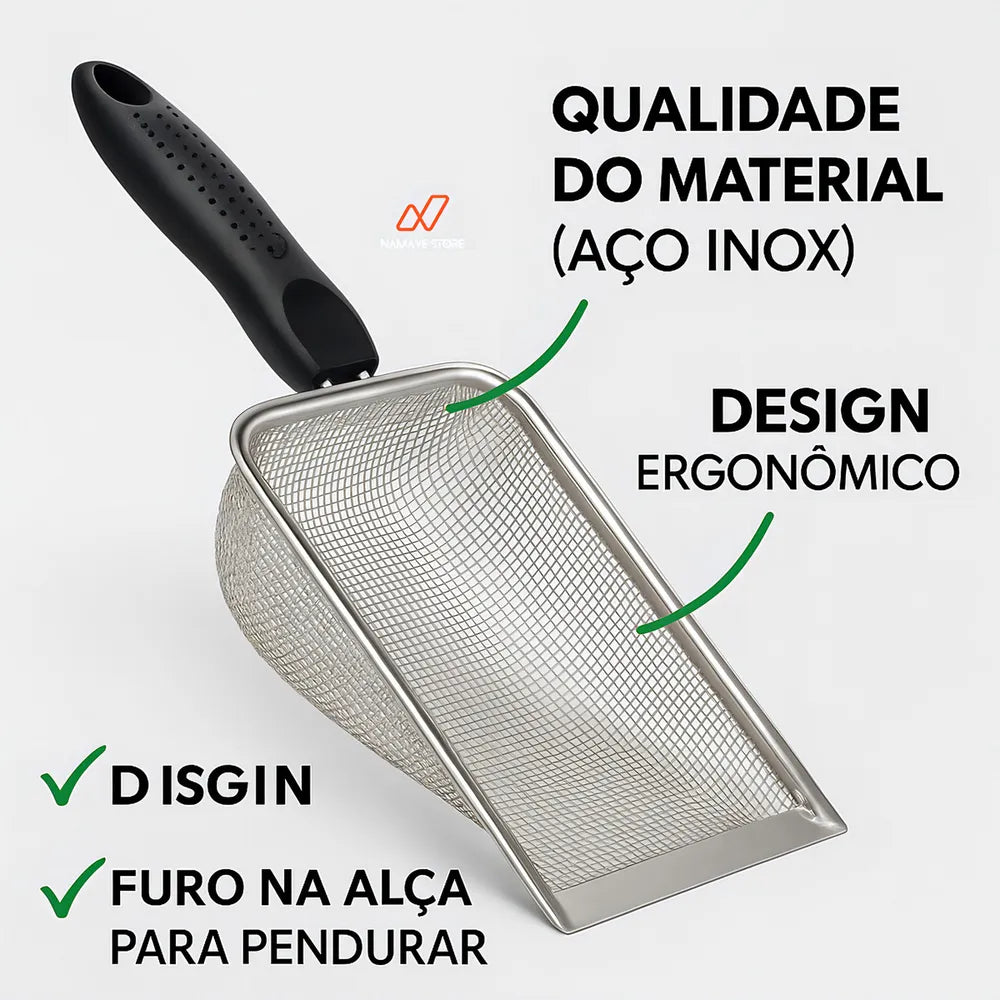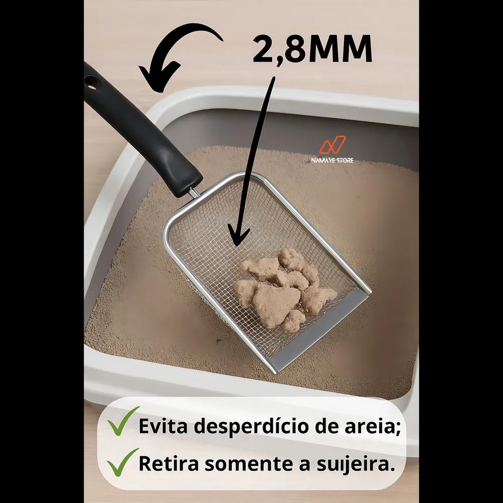 A Pá Higiênica para Gatos em Aço Inox com Malha de 2,8 mm da Namave é a solução ideal para quem busca praticidade e eficiência na limpeza da caixa de areia dos felinos. Com design ergonômico e material resistente, facilita a remoção dos resíduos, mantendo o ambiente do seu pet sempre limpo e higiênico.