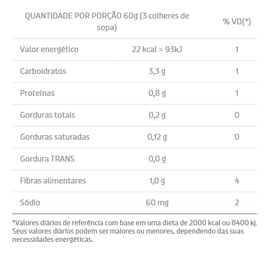 * Não possui glúten, ovos, leites, nozes e soja.