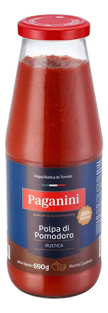 Descubra o sabor autêntico da cozinha italiana com a polpa de tomate rústica italiana da Paganini! Produzida a partir de tomates frescos, colhidos no ponto ideal de maturação e processados para preservar o frescor, traz uma cor vermelha brilhante e pedaços visíveis do fruto. Sua textura densa e consistente, junto aos aromas e sabores genuínos, lembra os molhos caseiros feitos com amor e cuidado.