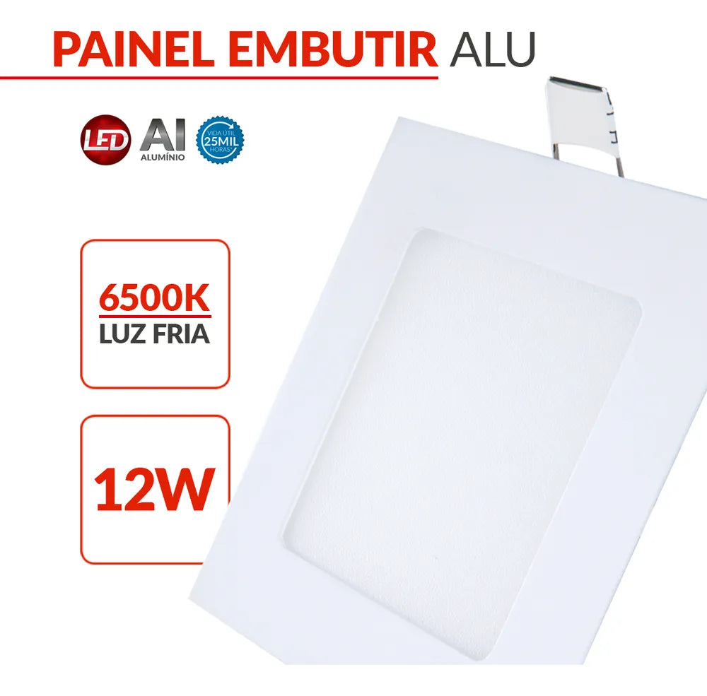 Modelo: Painel Embutir Quadrado 12W (Luz Branca Fria)