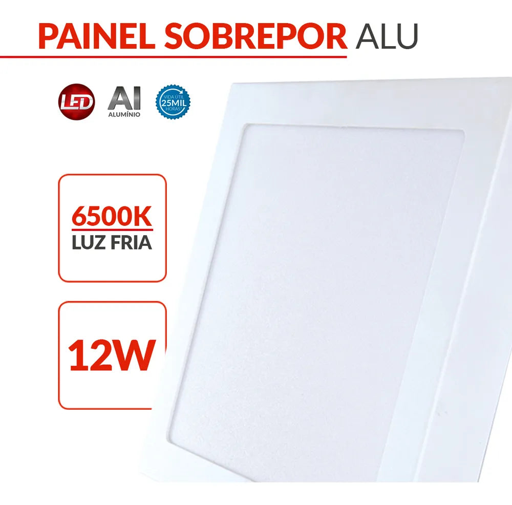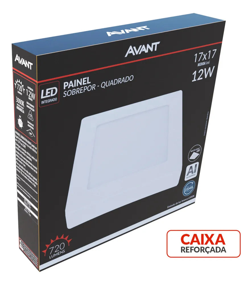 Painel Pop Sobrepor Quadrado 12W 6500K - Avant (Luz Branca Fria)