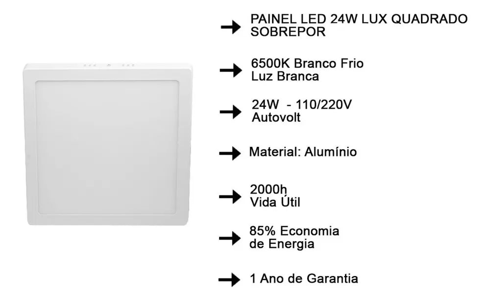 PAINEL LED 24W LUX QUADRADO SOBREPOR TASCHIBRA
