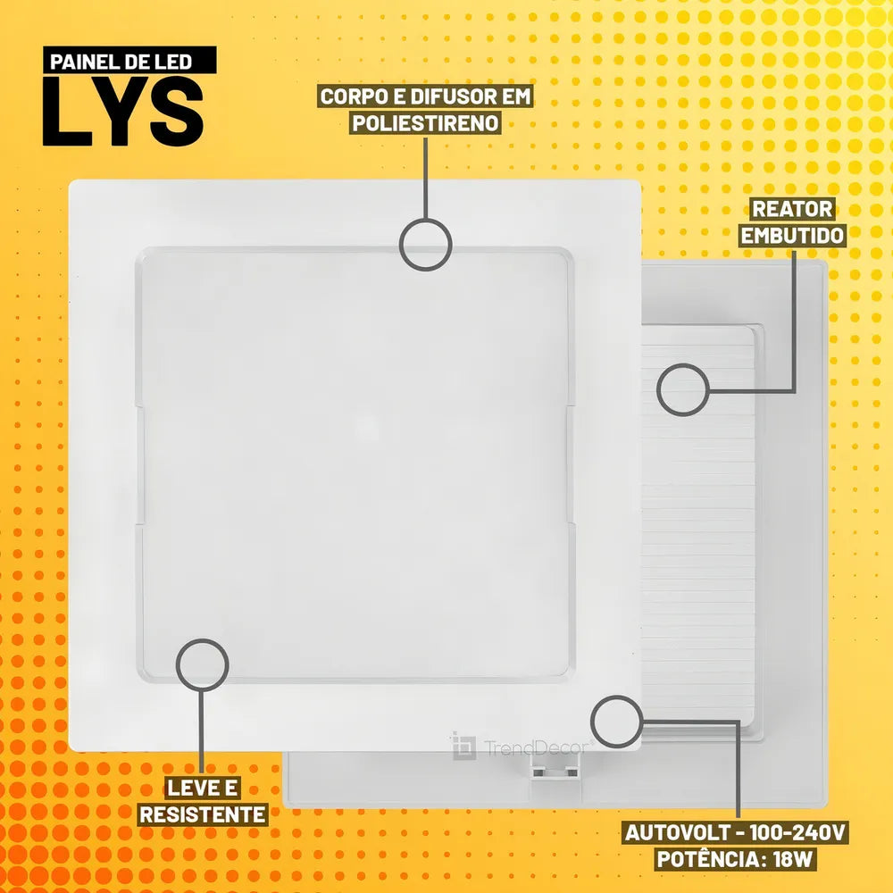 Painel Led Taschibra Lys 18w Embutir Quadrado 3000k Luz Quente Voltagem