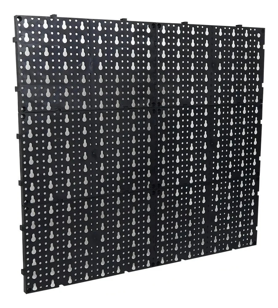 Muito funcional! sugiro que, além dos encaixes que existem nas peças, sejam utilizadas abraçadeiras de nylon, para unir uma placa à outra. Assim, será necessário aparafusar apenas as duas placas de cima, para sustentar todo o painel que será formado pela união das seis placas. Recomendo!.