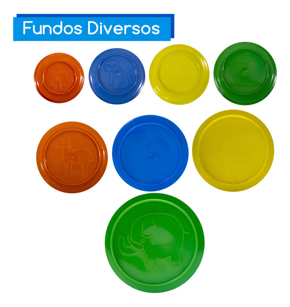 Recomendado para bebês a partir de 6 meses, o modelo Potes e Cia Pedagógico é ideal para que os pequenos explorem sua criatividade e habilidades de encaixe.