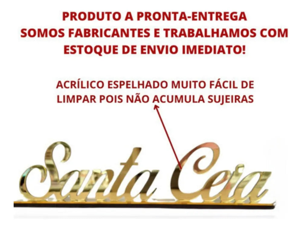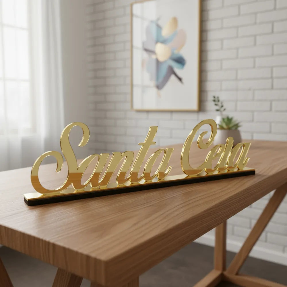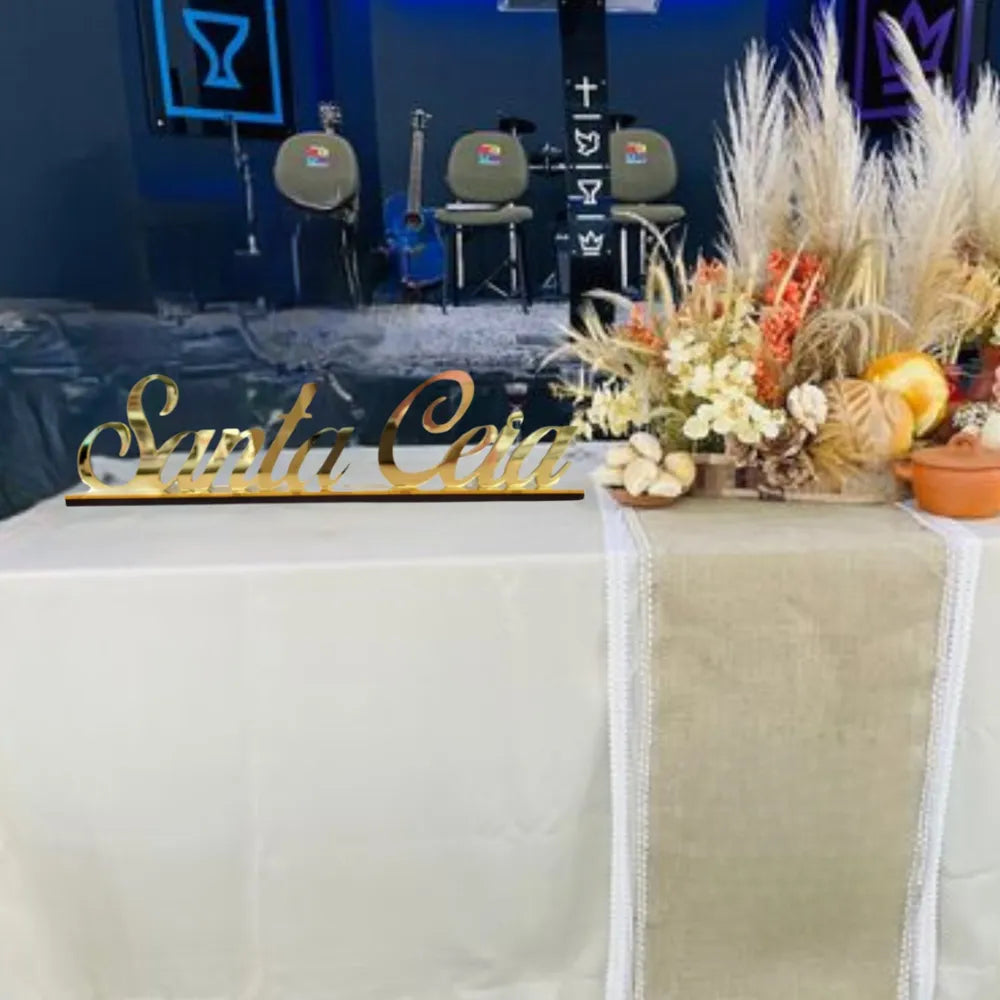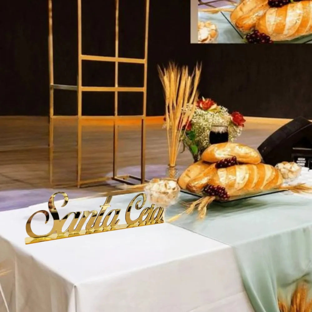 Palavra Santa Ceia - Acrílico Espelhado Dourado.
