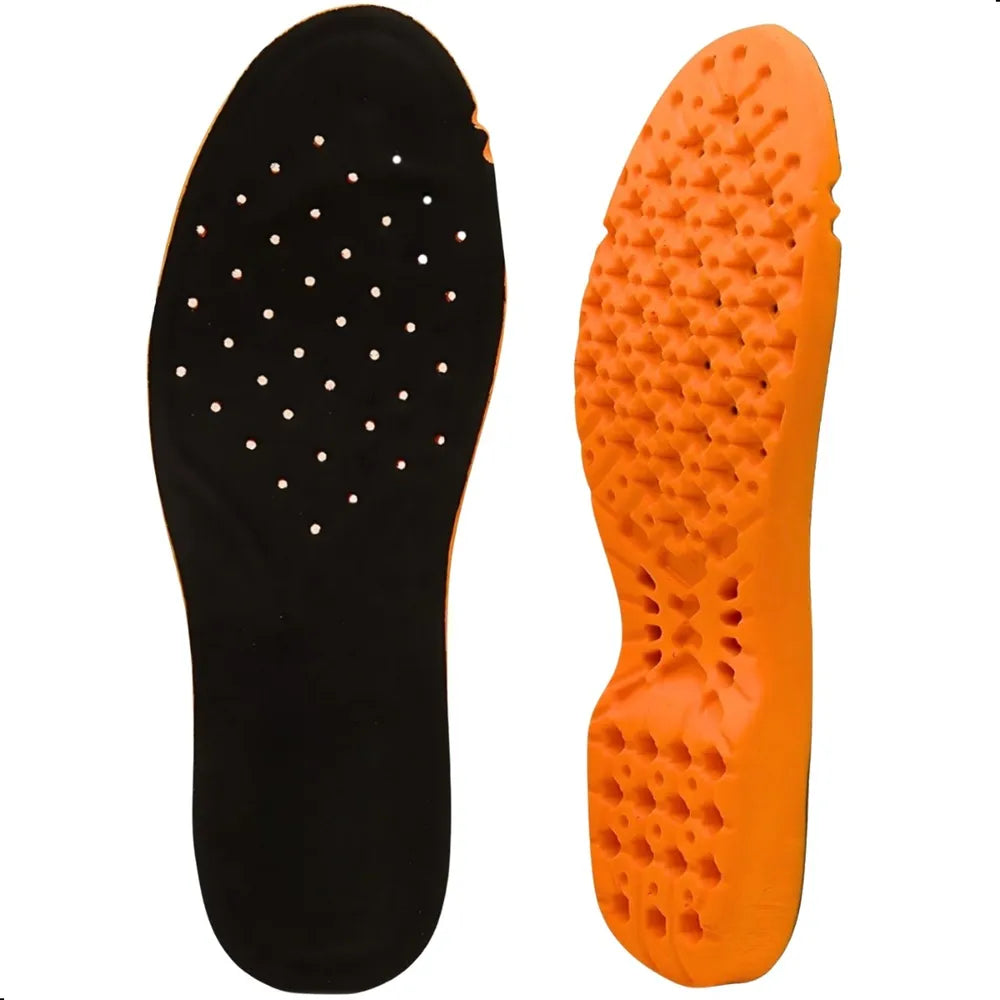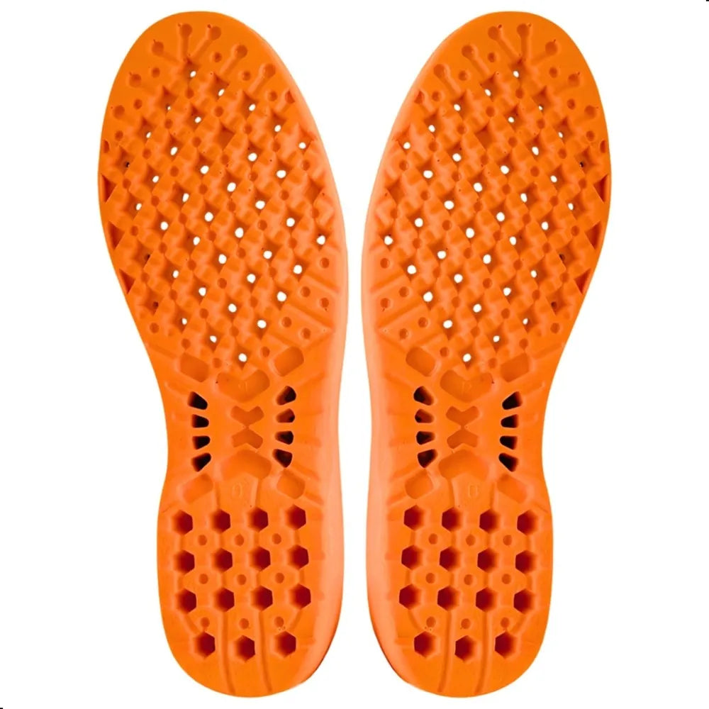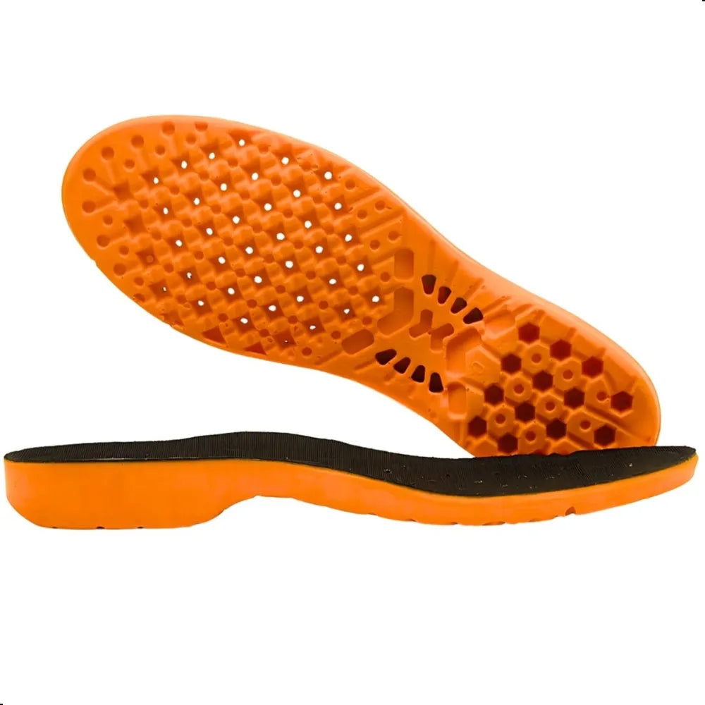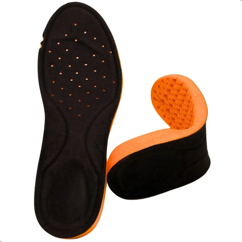 Experimente o máximo conforto e proteção para seus pés com as Palmilhas Kallucci. Com uma espessura de 25 mm na parte traseira e 15 mm na parte dianteira, elas possuem um design anatômico com perfurações estrategicamente posicionadas, garantindo absorção de impacto em toda a extensão do pé.