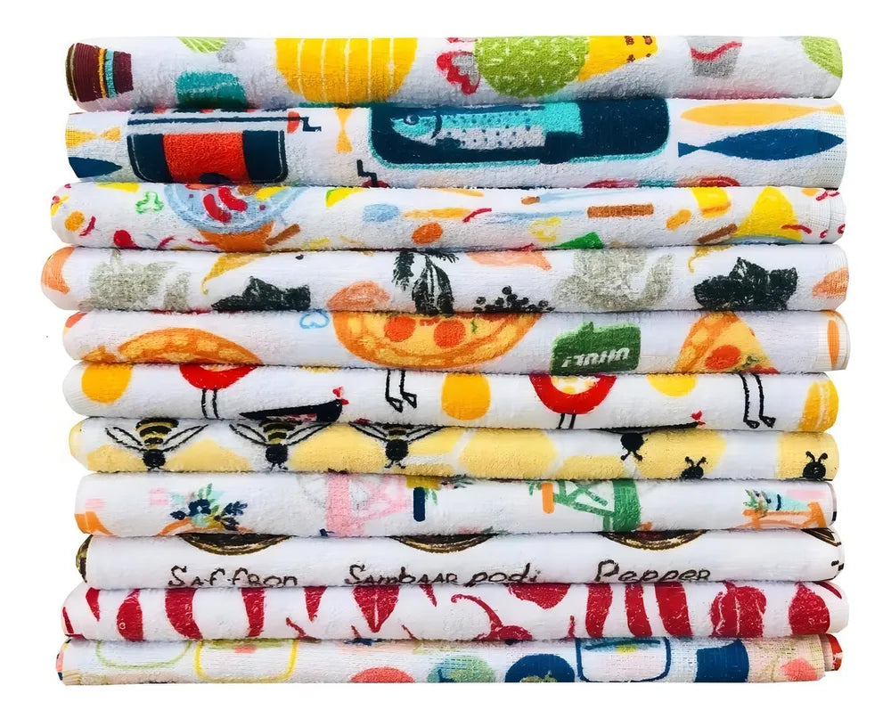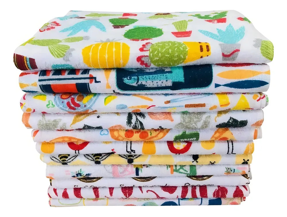 Pano de Prato atoalhado de alta qualidade, pré lavado, estampas alegres e diversas, não soltam fiapos, não encolhem, e o principal secam a louça.