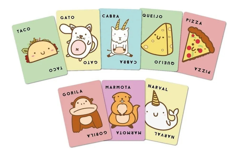 É um jogo fácil de entender, parece bobinho, mas é muito engraçado e divertido, e da pra jogar com até 8 pessoas! a caixa é pequena, fácil de levar para outros lugares e eu achei a qualidade das cartas boas, mas são foscas então, quem quiser comprar sleeves é o tamanho padrão.