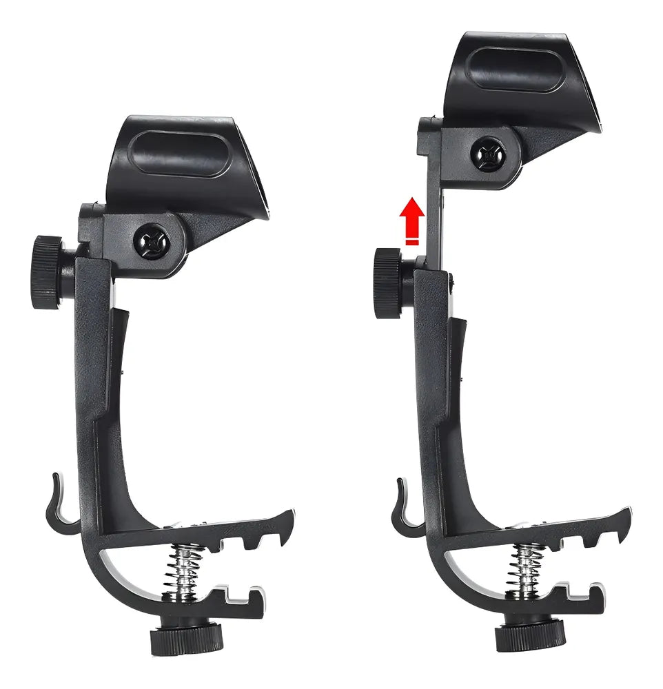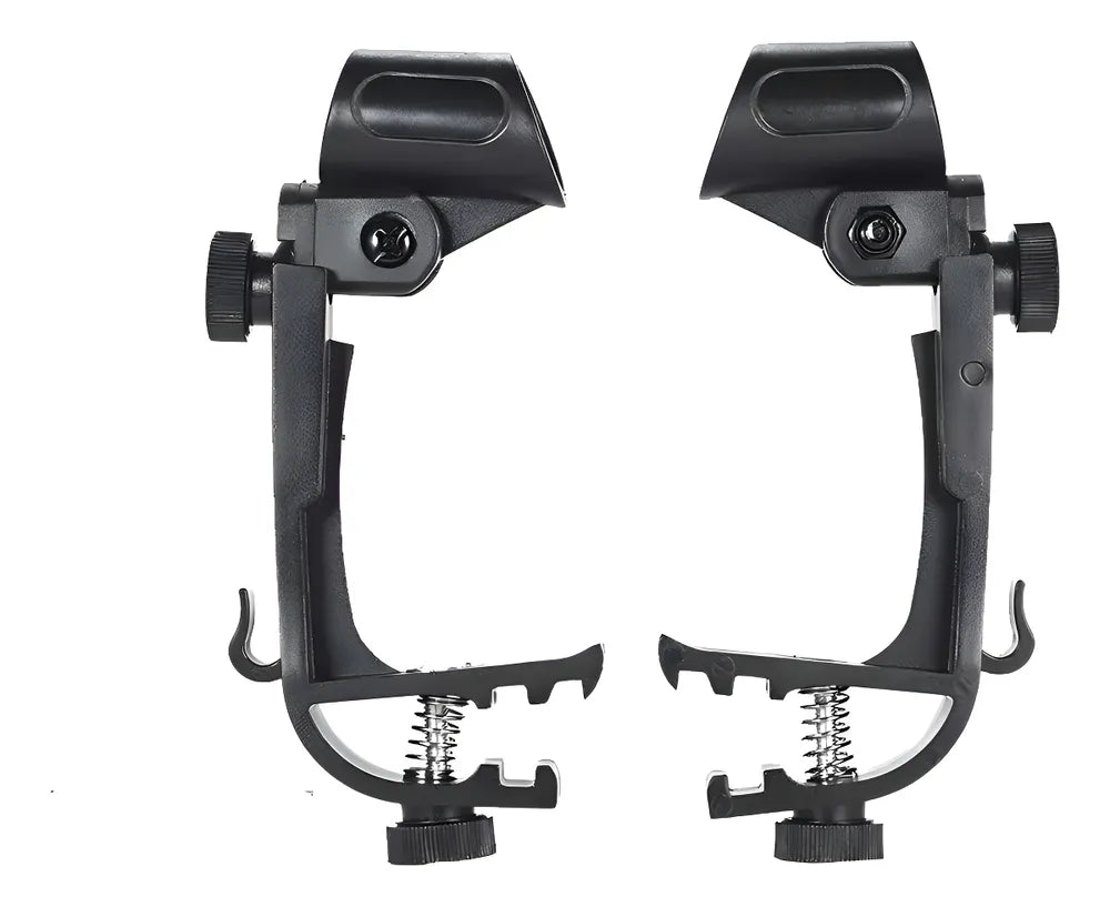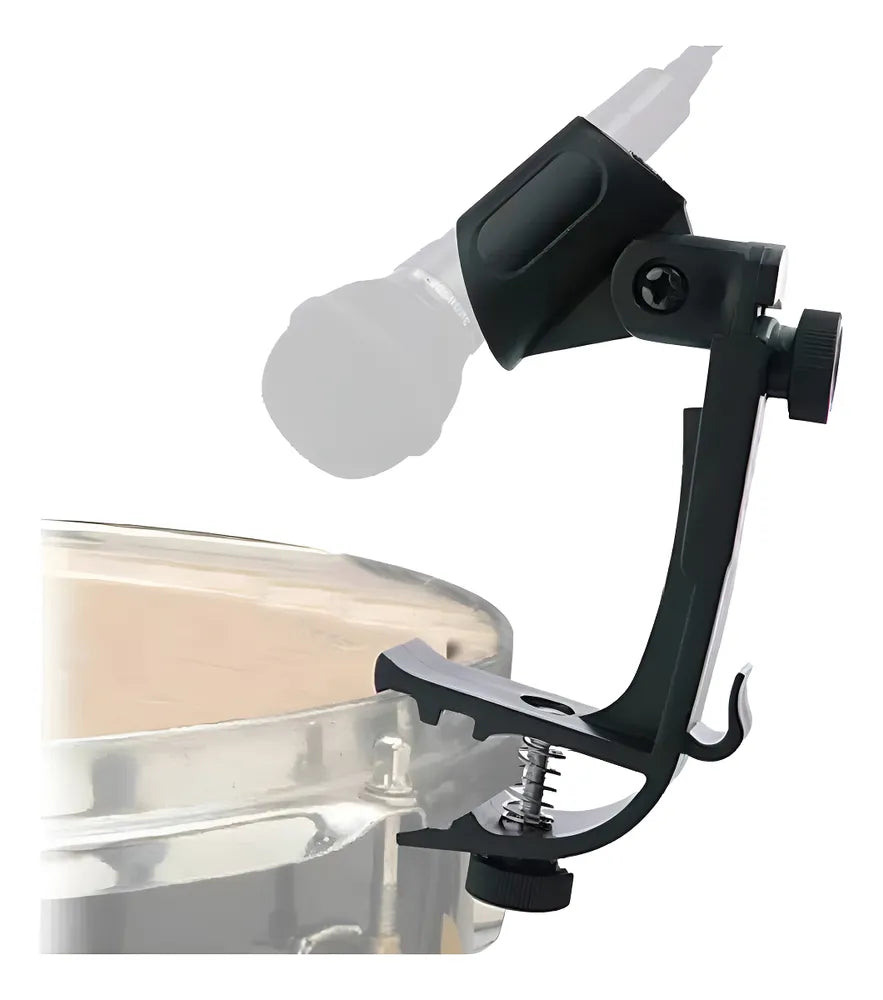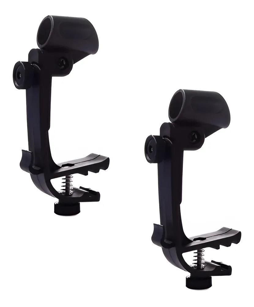 Os suportes são compatíveis com clamps de baterias e têm um diâmetro máximo compatível de 5 cm e um diâmetro mínimo compatível de 2 cm. Isso significa que eles podem se encaixar facilmente em qualquer aro do seu conjunto de tambores de bateria e percussão. Além disso, podem conter qualquer microfone de mão, como o SM57, entre outros.