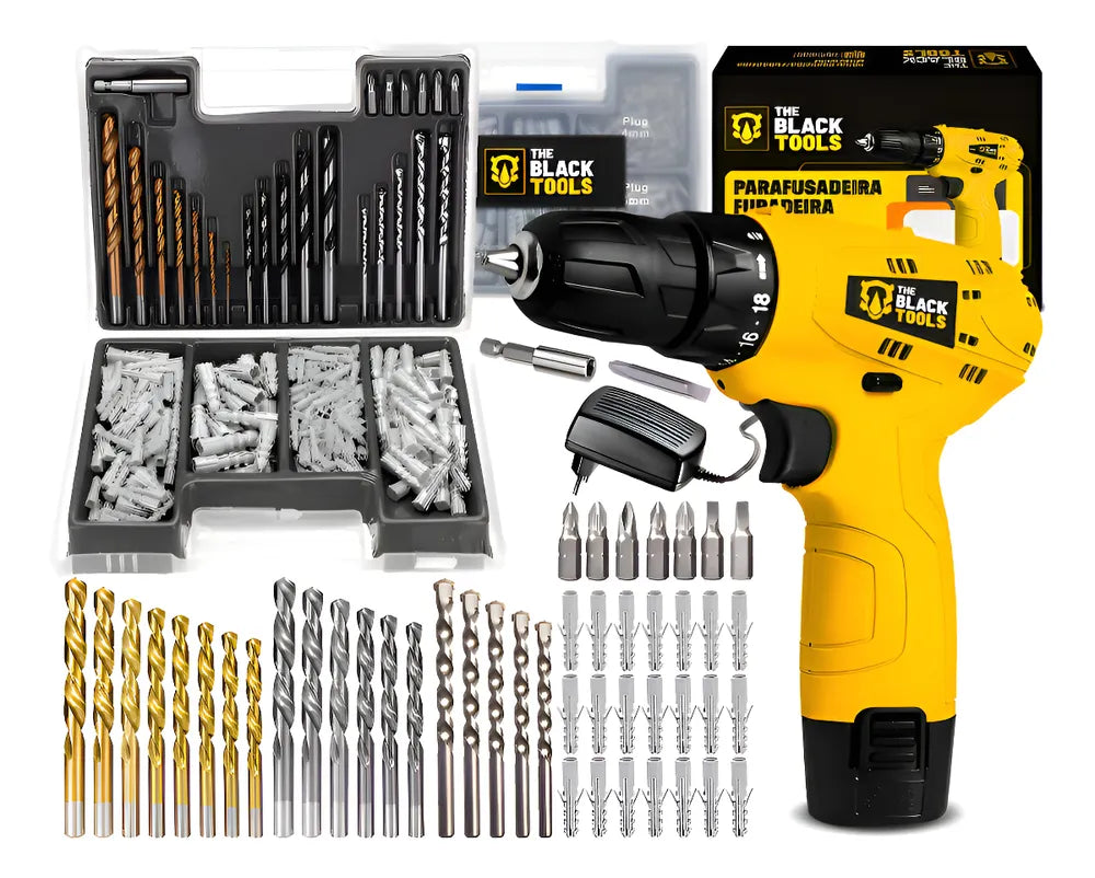 PARAFUSADEIRA FURADEIRA 3/8 10MM SEM FIO BATERIA 12V BIVOLT TB-12A The Black Tools