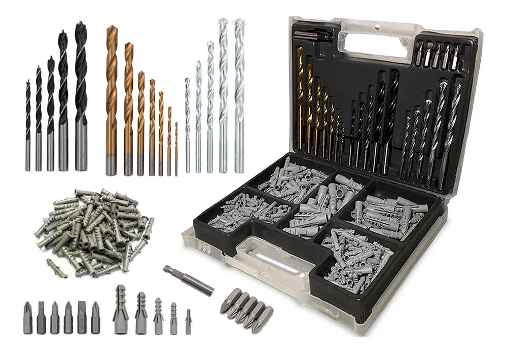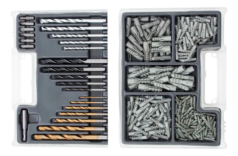 O Jogo de brocas bits e buchas com 300 peças da é ideal para uso doméstico e hobby, conta com as brocas e bits e buchas com as medidas mais comuns.