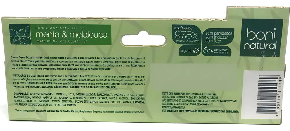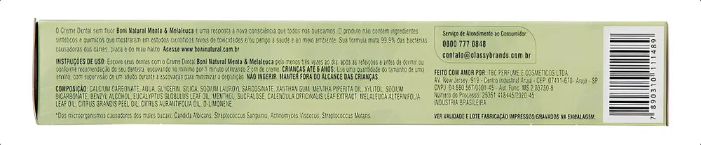 Escove seus dentes com a Pasta de Dente Boni Natural Menta e Melaleuca pelo menos três vezes ao dia: após as refeições e antes de dormir ou conforme recomendação do seu dentista, escovando no mínimo 2 minutos utilizando 2cm de creme.