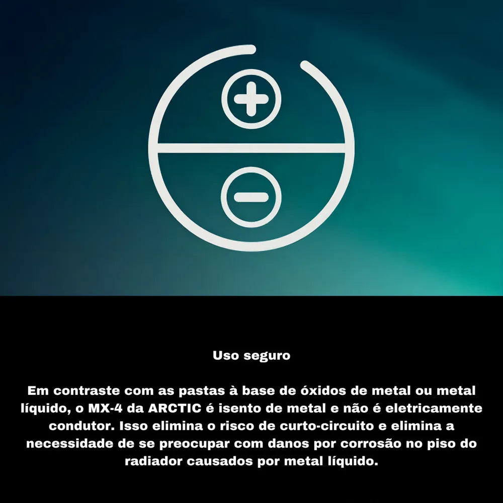 Umas das melhores pastas térmicas que você pode comprar, dura até 8 anos e não conduz eletricidade. Ideal para troca debpasta de vídeo games, processadorea e placa de vídeo.