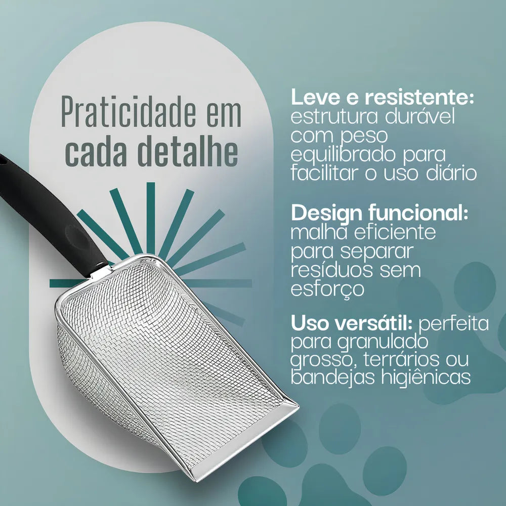 01 Pá Higiênica de Areia para Gatos em Aço Inoxidável