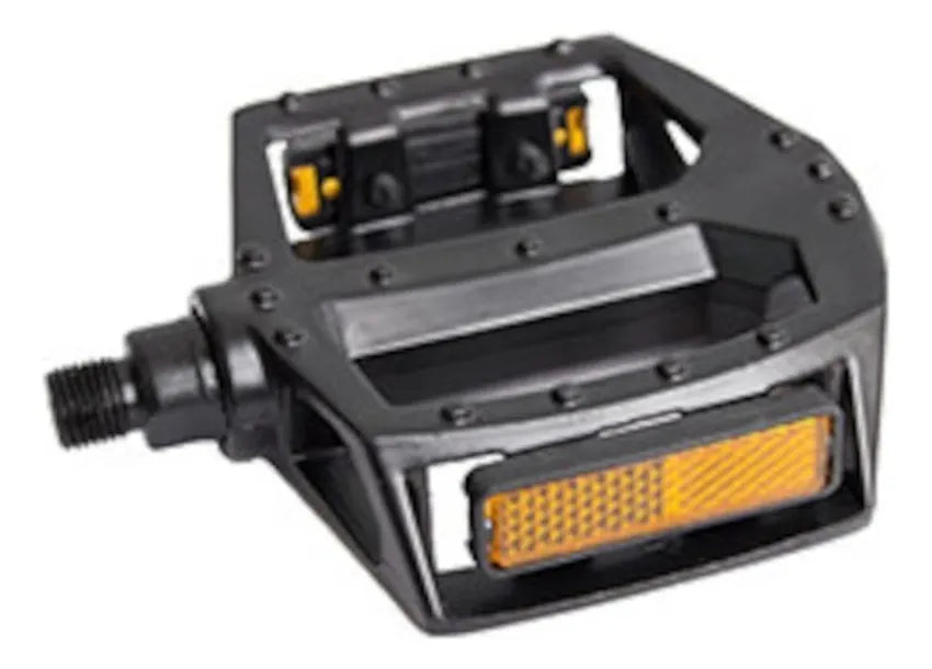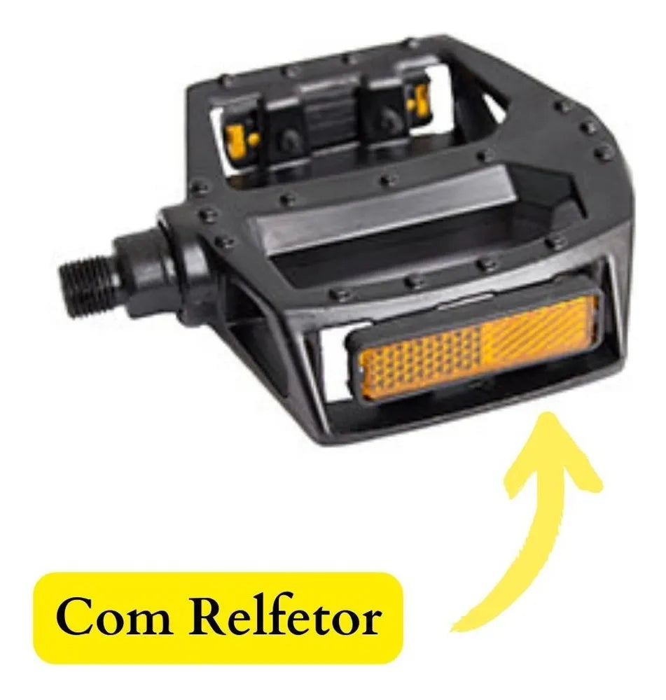 Pedal de Alumínio Plataforma para Bicicleta Rosca 9/16 GTA com esferas. Pedal plataforma com 10 garras para uma melhor aderência sobre o pedal e possui refletivos para visibilidade noturna. Desenvolvido para pedivelas com rosca de 9/16' (grossa). Possui eixo construído em aço. Excelente acabamento na cor preta, para combinar com qualquer bike! Além do conforto proporcionado, apresenta melhor segurança.