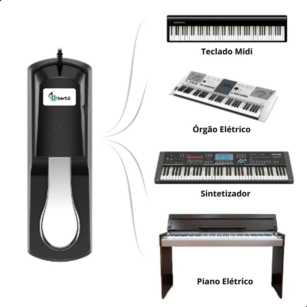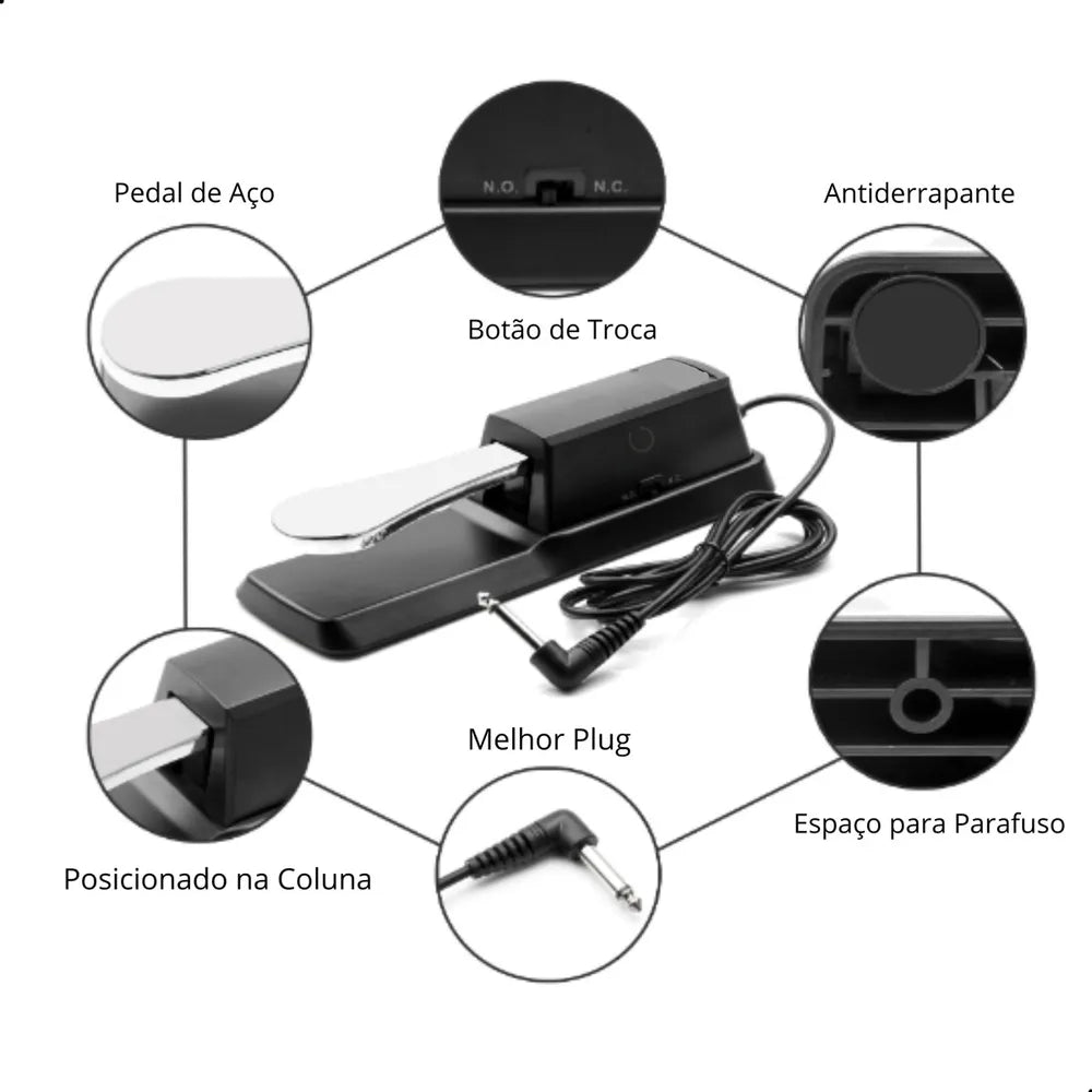 Este Pedal Sustain de Alta Qualidade é compatível com praticamente todos Teclados Eletrônicos, Controladores e Pianos Digitais.