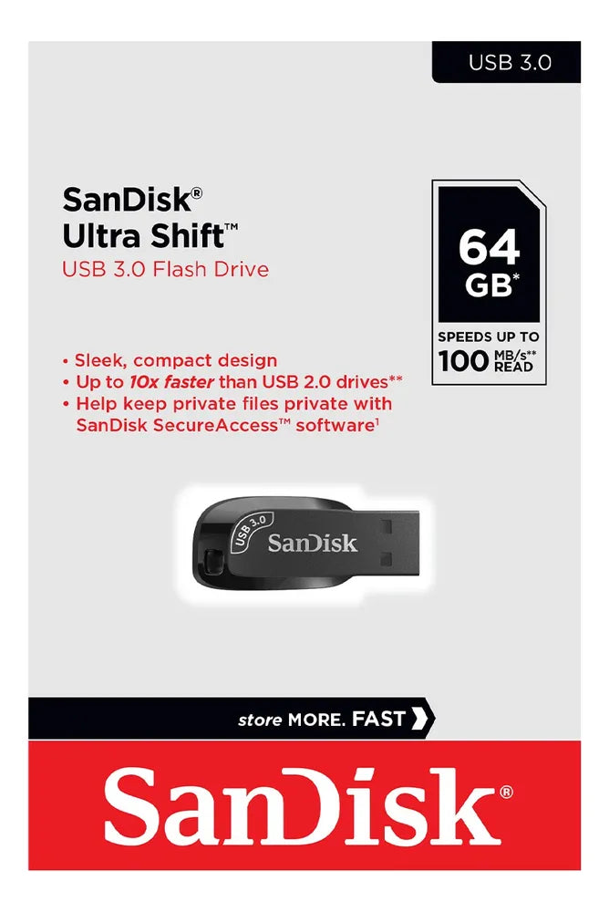 Mantenha o mundo digital na ponta dos dedos com a unidade SanDisk Ultra Shift USB Com velocidades de leitura até 100 MB/s, pode reduzir o tempo de espera e dedicar mais tempo ao que realmente interessa.