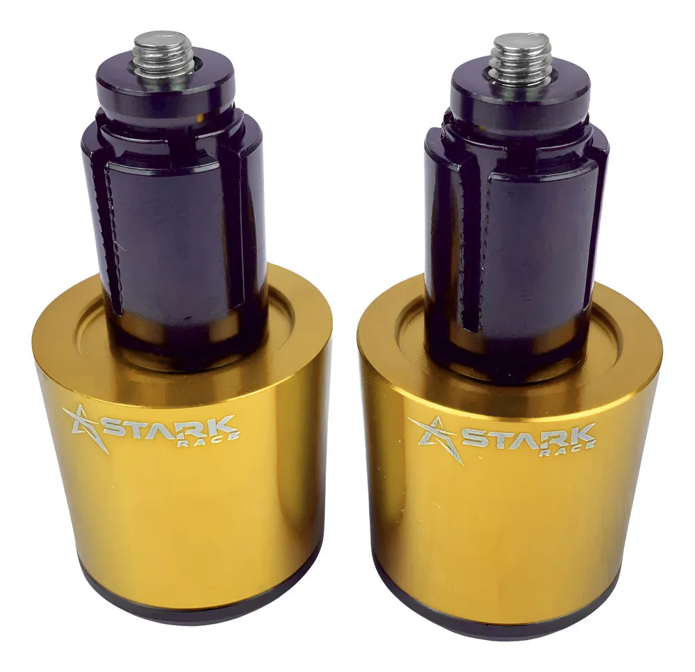Dourado - Os pesos funcionam para deixar o guidão mais leve nas manobras em baixas velocidades. como o guidão é estreito, os pesos nas extremidades aumentam a massa e funcionam como uma extensão da alavanca, deixando-o mais leve.