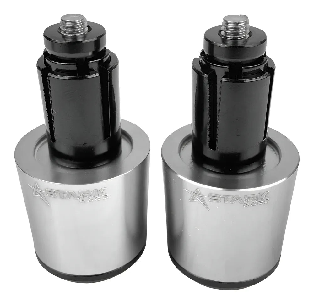 Prata - Os pesos funcionam para deixar o guidão mais leve nas manobras em baixas velocidades. como o guidão é estreito, os pesos nas extremidades aumentam a massa e funcionam como uma extensão da alavanca, deixando-o mais leve.