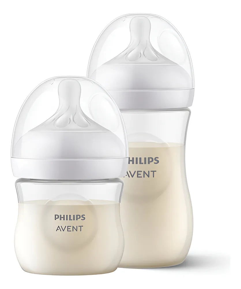 O kit inclui duas mamadeiras de tamanhos diferentes 125ml (0+ meses) e 260ml (1+ meses), proporcionando a flexibilidade necessária para cada fase do crescimento do seu bebê.