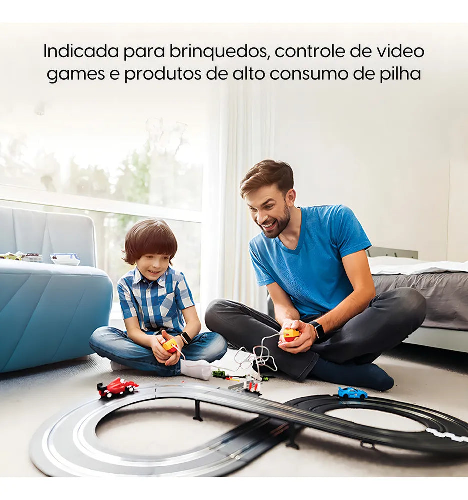 Sendo recarregáveis duram mais e geram menos desperdício. Assim, seus dispositivos sempre terão energia para funcionar sem que você tenha que se preocupar com isso, esqueça de comprar baterias com freqüência!
