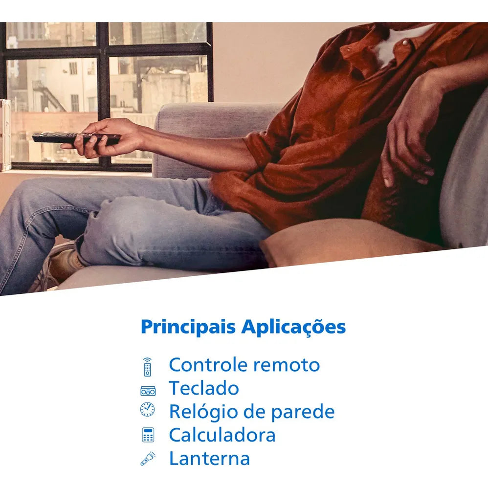 Ideais para controles remotos, relógios, rádios, lanternas, calculadoras e outros aparelhos de baixo consumo.