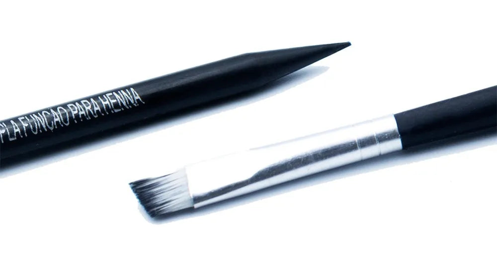 O Pincel Dupla Função Chanfrado e Ponta Palito Arte Sedução, é perfeito para aplicação de Henna em sobrancelhas.