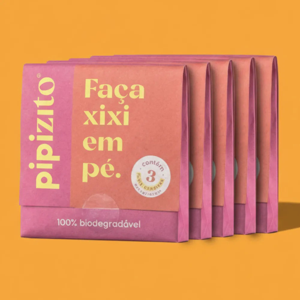 Fazer xixi não precisa ser um desafio! Com o pipizito descartável você estará sempre pronta para fazer xixi em pé de forma prática e segura em qualquer situação. Ele é um funil urinário descartável perfeito para ter na bolsa ou no bolso toda vez que sair de casa. Cada pacotinho vem com 3 unidades e o kit total vem com 5 pacotinhos, ou seja, 15 unidades que são feitas 100% com papel reciclado e são 100% biodegradáveis.