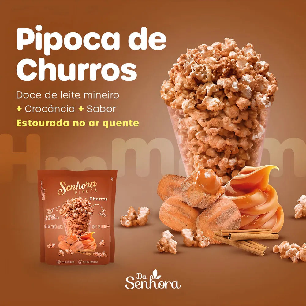 Experimente uma explosão de sabor com a PIPOCA GOURMET da Senhora Pipoca, feita com a combinação irresistível de doce de leite mineiro e canela. Super crocante e saborosa, é perfeita para qualquer momento do seu dia!