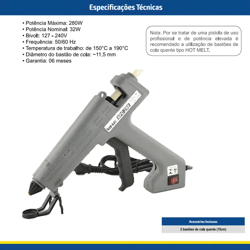 • Diâmetro do bastão de cola: ~11,5 mm