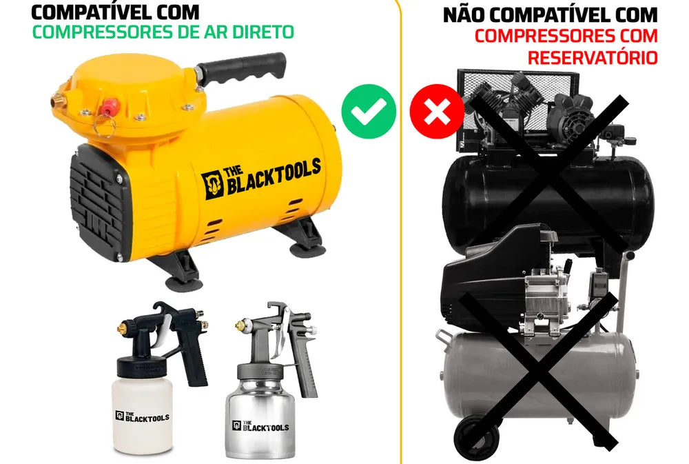 - Compatível com compressores de ar direto.