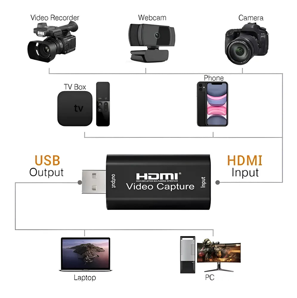 A Mini Placa de Captura Áudio e Vídeo via HDMI, envia os sinais para o seu computador. Apropriado para a alta definição, transmita a imagem do seu celular, do videogame, de outro computador ou da sua câmera direto para o computador.
