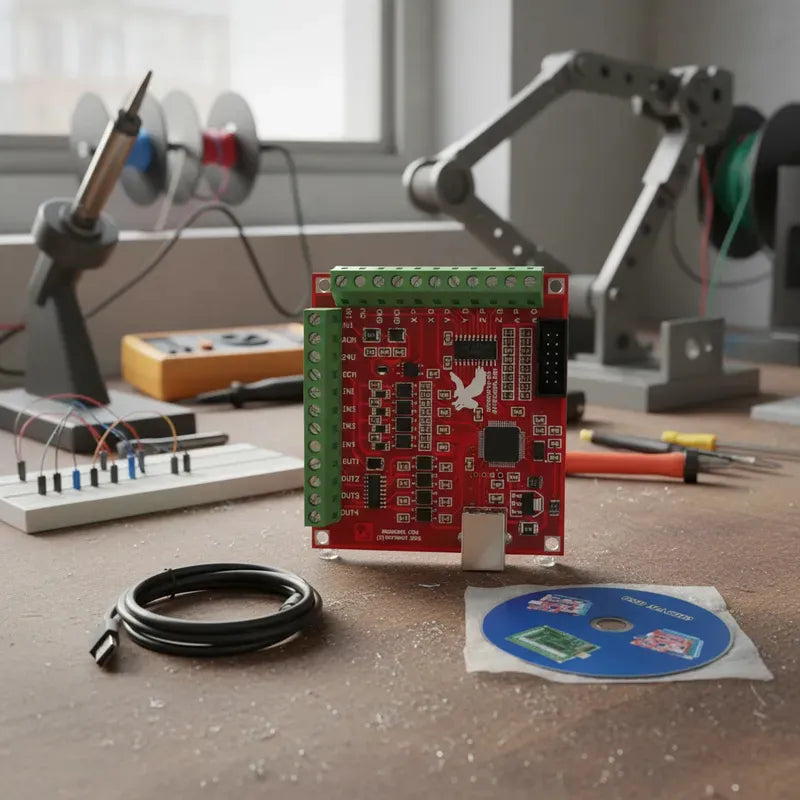 Eleve seus projetos de marcenaria de maneira profissional com esta placa controladora CNC Mach3 de 4 eixos com capacidade de 100KHz. Ideal para CNC routers, esta placa inclui todos os acessórios essenciais para um controle preciso de motores de passo, spindle e sensores.