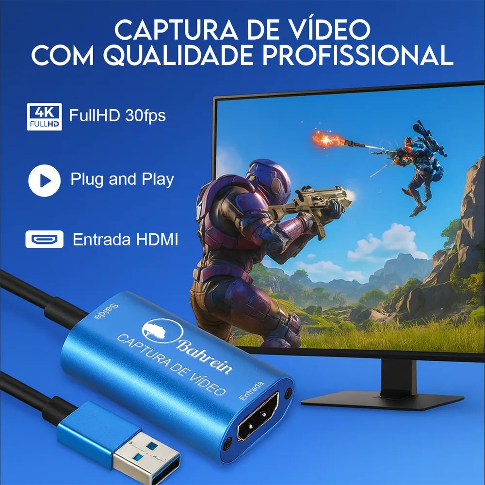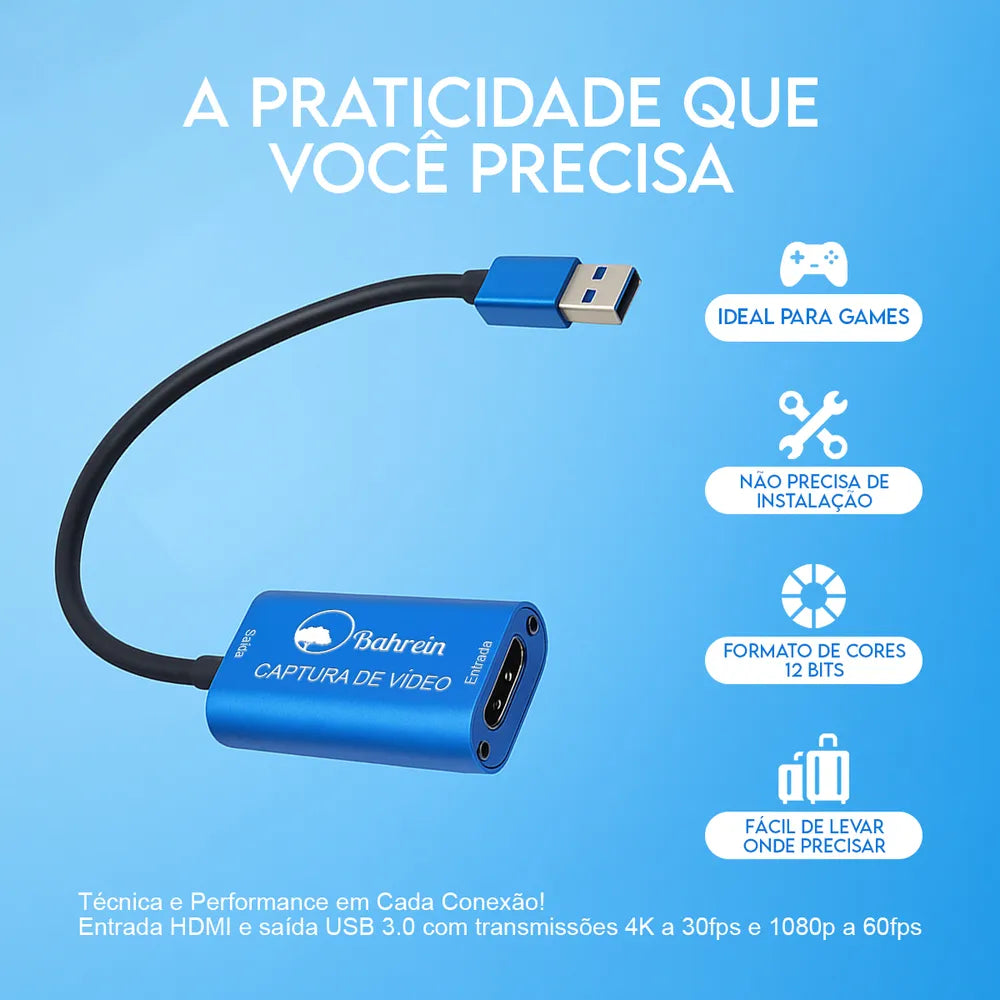 A Placa de Captura HDMI USB 4K e 1080p da Bahrein foi projetada para entregar qualidade profissional em gravações, transmissões ao vivo, videoconferências e aulas online. Com resolução real em 4K a 30 quadros por segundo e 1080p a 60 quadros, você terá imagens nítidas, com alta fidelidade e excelente fluidez.