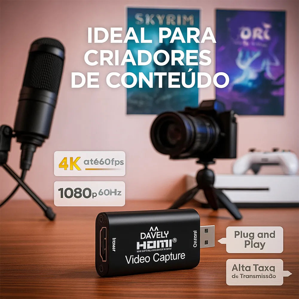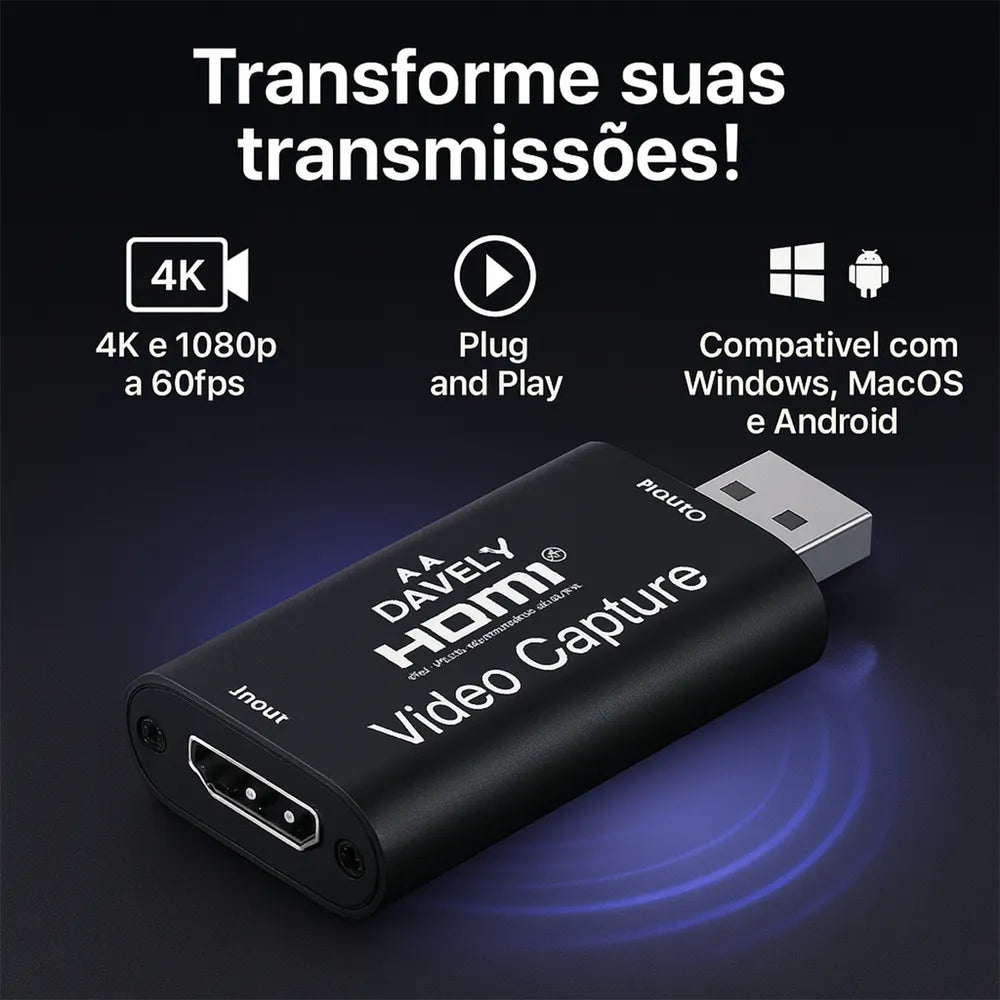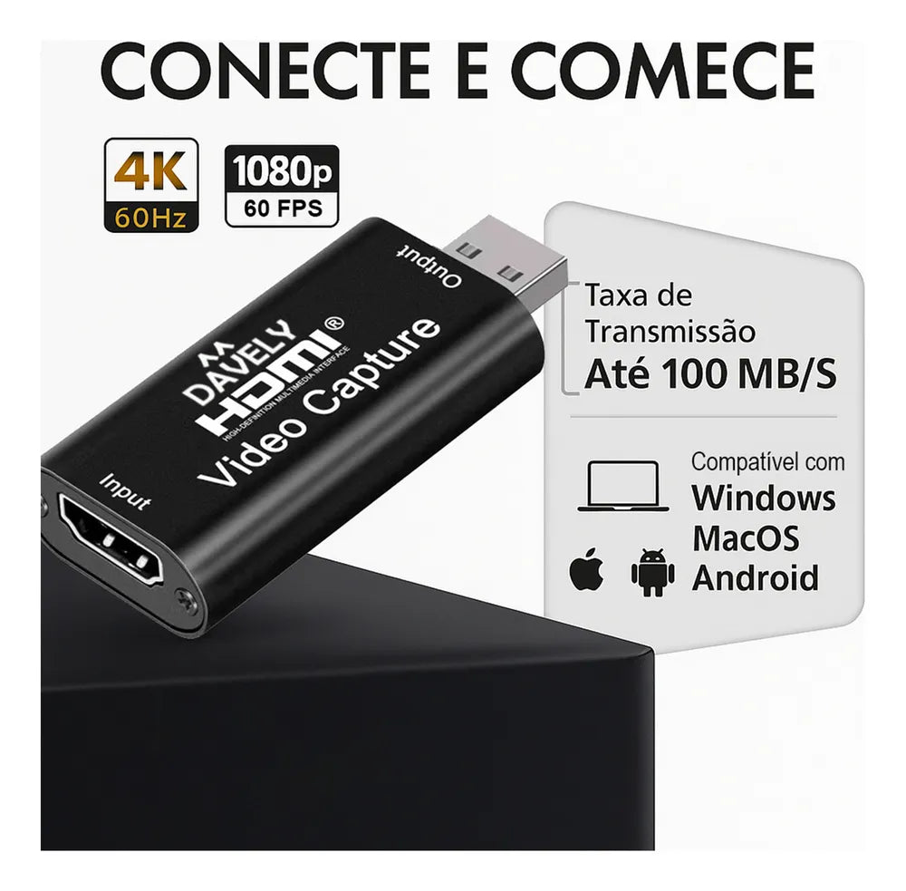 Placa De Captura HDMI USB 3.0 Davely 4K 1080p 60fps Para Streaming Gravação Gamer Plug And Play