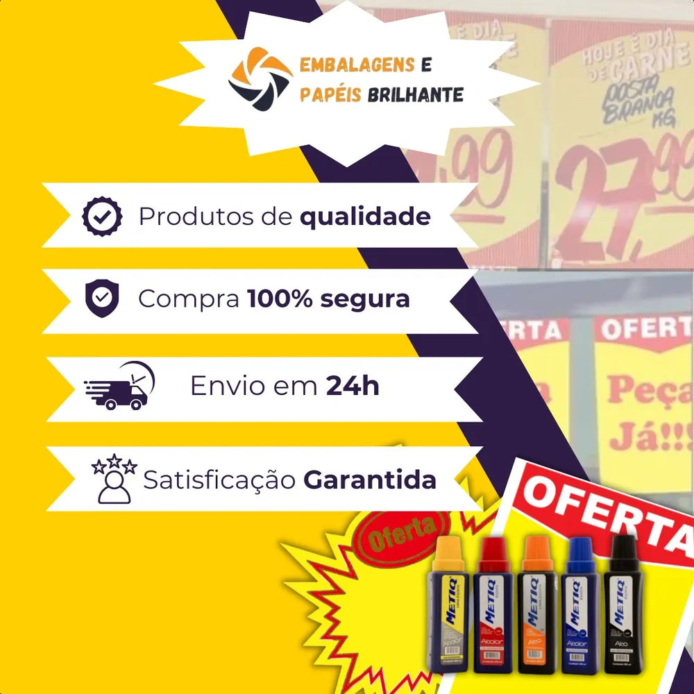 Compre agora os cartazes para ofertas e promoções da EMBALAGENS E PAPÉIS BRILHANTE ! Atraia mais clientes e mais vendas divulgando as promoções da sua loja com nosso cartaz Promocional .