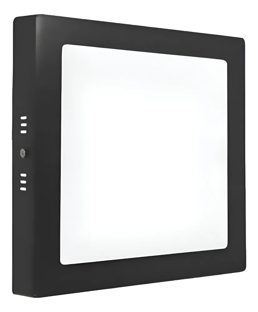 Luz Branco Frio 6500k - Plafon Led Quadrado Preto Branco