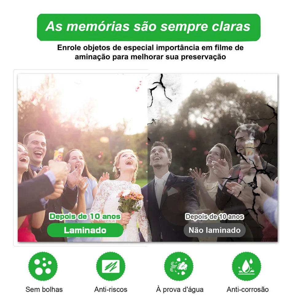 Uso: Plastifique fotos e recordações para preservar a qualidade e evitar o desbotamento ou danos. Ideal para criar álbuns de fotos duráveis e memórias visuais que resistem ao tempo.