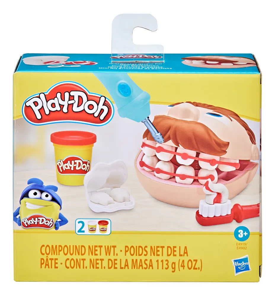 O Play-Doh Mini Classics Brincando de Dentista da Hasbro traz toda a diversão do clássico kit de dentista em uma versão compacta e fácil de transportar. Com este mini kit, as crianças podem criar dentes com o molde, remover cáries com a broca e até ensinar o paciente a escovar os dentes! Tudo isso com duas cores de massinha Play-Doh atóxica, proporcionando horas de entretenimento em qualquer lugar.