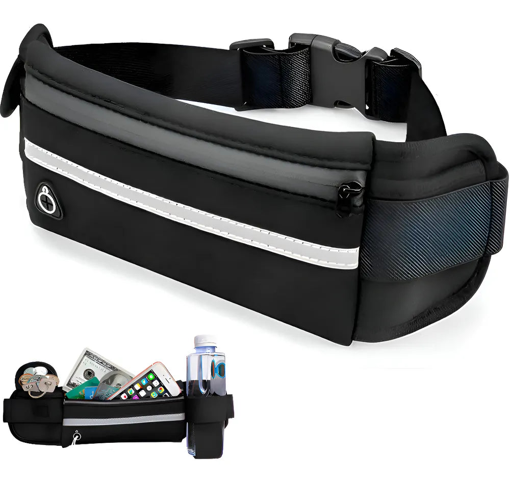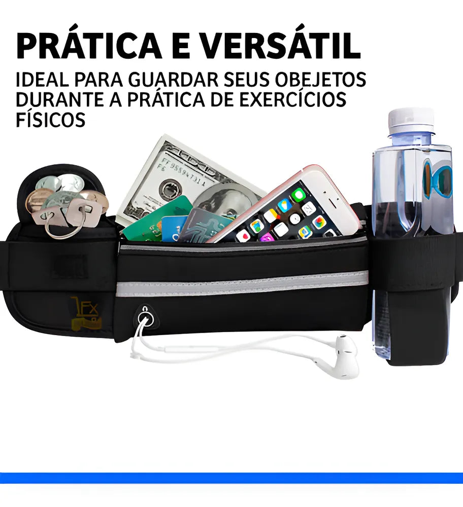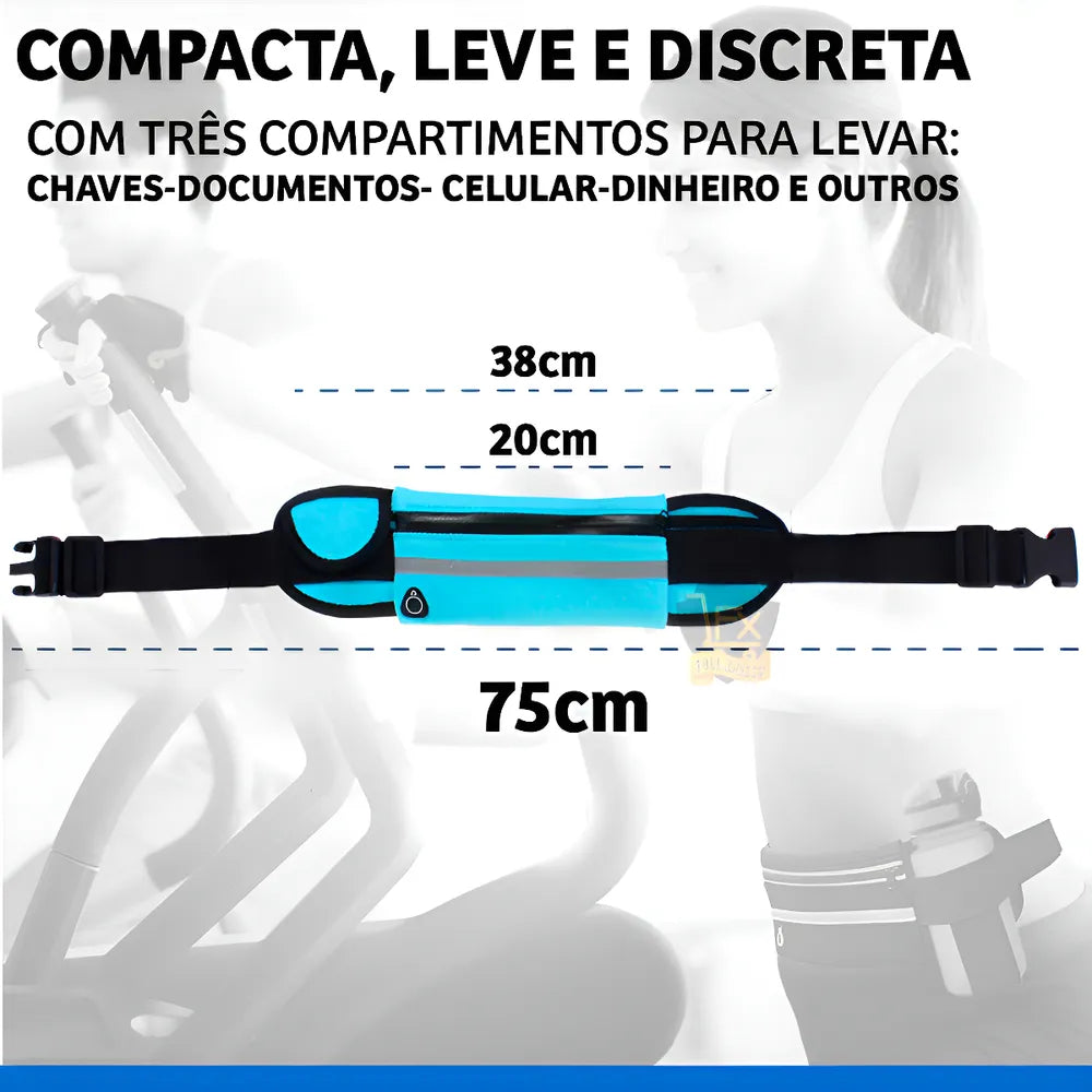 - Alça elástica ajustável, tanto para cinturas mais finas, até as mais grossas, deixando a pochete bem junto ao corpo, sem ficar balançando e incomodando os movimentos.