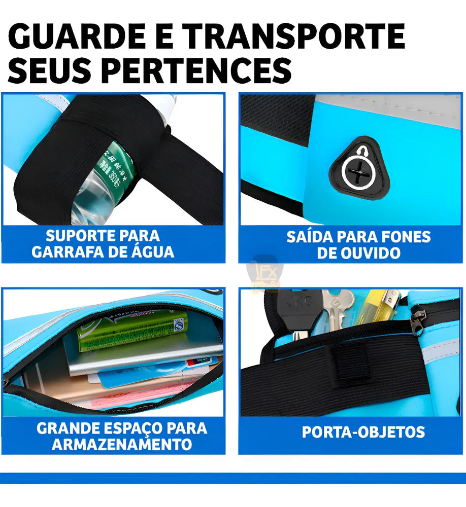 Proporciona maior conforto e segurança nas caminhadas e corridas. Não incomoda nem fica balançando pois possui uma alça elástica ajustável deixando a pochete bem rente ao corpo.