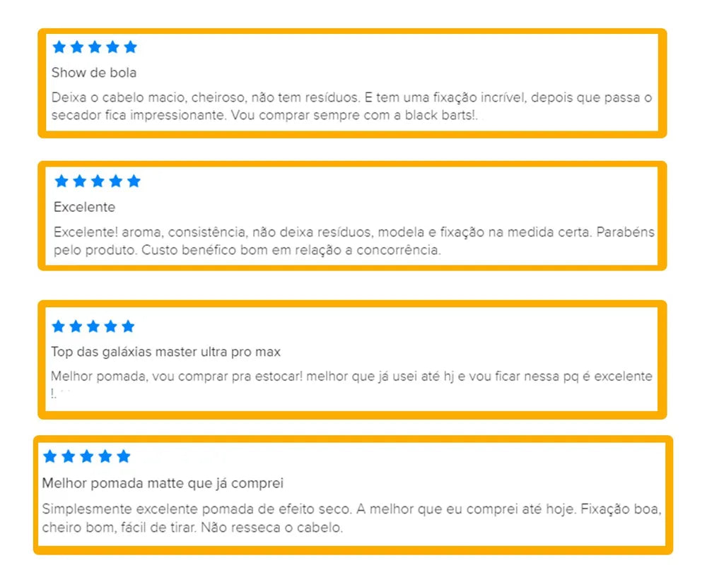 - Coloque a quantidade necessária (de acordo com o tamanho e volume do seu cabelo) de Pomada Black Barts® na palma das mãos e espalhe. Em seguida, aplique sobre o cabelo úmido ou seco e então modele com seu penteado favorito. É de simples aplicação e sai fácil com água, além de não deixar resíduos que possam incomodar visualmente.