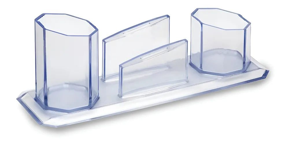 O Porta Caneta Trio Plus Cristal mede 8,7 x 7,5 x 23,8 cm, um tamanho compacto que ocupa pouco espaço na sua mesa, mas ainda assim oferece três compartimentos para armazenar todos os seus itens essenciais de escrita. Com o Porta Caneta Trio Plus Cristal, você terá tudo o que precisa ao seu alcance, ajudando a aumentar a sua produtividade e eficiência no trabalho.