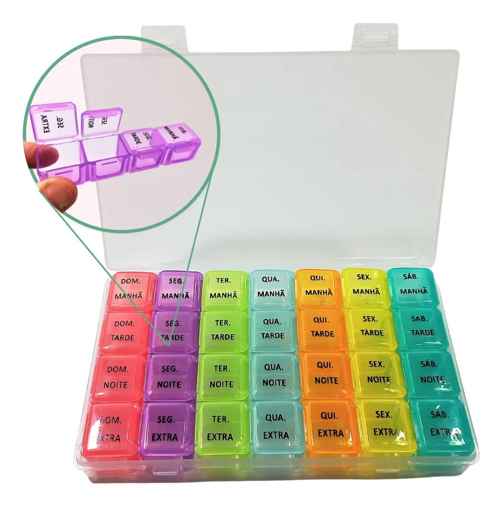 - Excelente para organizar a semana e levar somente o compartimento do dia
