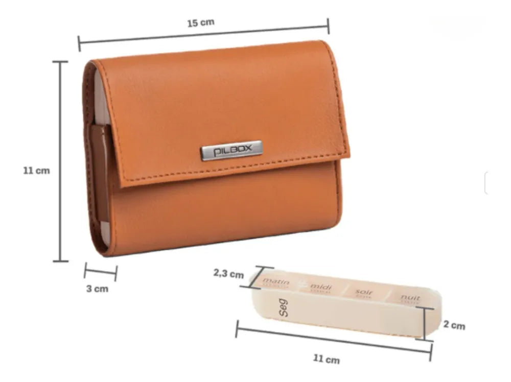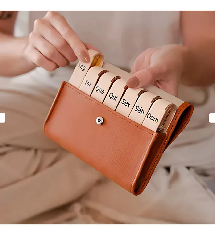 Muito pratico e orfaniza bem. So vale uma ressalva, que a caixa se nao ficar bem organizada de modo que ela nao abra a parte de couro, pode ocorrer de abrir um dos lados e os comprimidos caem. Mas se bem armazenada, nada acontece. Exemplo, se for colocar na bolsa, deixe em um corpartimento pequeno, como bolso interno.