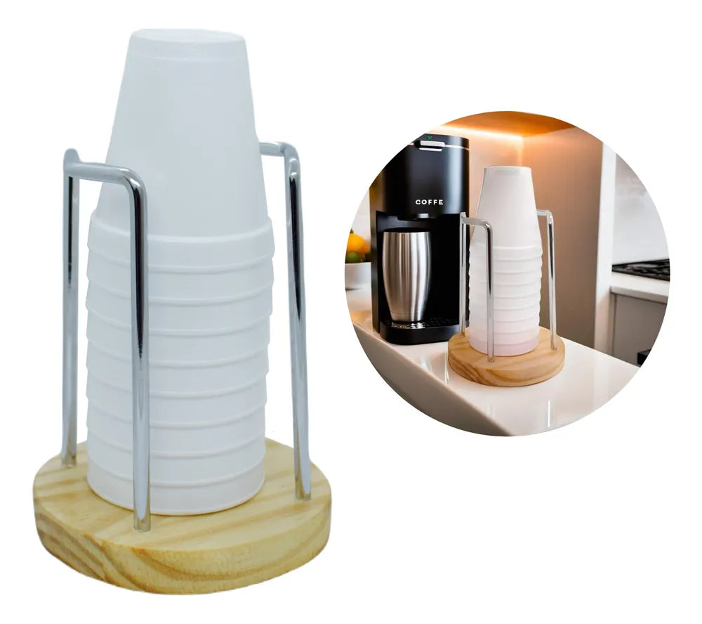 Deixe o cantinho do café muito mais elegante e organizado com esse suporte de copos. Ideal para deixar em bancadas onde os copos ficam expostos para o convidado se sentir à vontade em pegar um pouco de café ou agora.