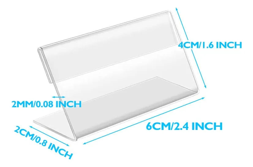 - A apresentação de um produto é muito importante para a venda, pensando nisso indicamos a você o nosso “Kit porta preço”, feito em acrílico cristal espessura 2mm, esse kit com 50 unidades garante que sua vitrine fique ainda mais organizada.