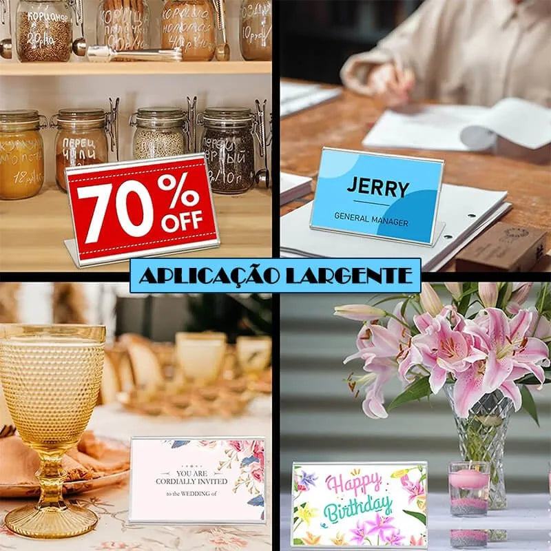 - Porta preço nas medidas: Largura 6cm / Altura 4cm / Profundidade 2cm